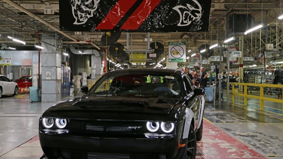С конвейера канадского завода альянса Fiat Chrysler Automobiles (FCA) сошел последний, 3300-й экземпляр экстремального купе Dodge Challenger SRT Demon. Изначально черную машину вручную перекрасят в эксклюзивный оттенок красного Viper Red и в июне выставят на торги аукционного дома Barrett-Jackson. Публичный дебют лимитированного Dodge Challenger SRT Demon состоялся в апреле 2017 года. Маслкар оснащается 6,2-литровым двигателем V8 с приводным нагнетателем. Мотор выдает 850 лошадиных сил и 1044 Нм крутящего момента. С места до 96 километров в час SRT Demon разгоняется за 2,1 секунды. Дрэговую дистанцию в четверть мили (402 метра) купе проходит за 9,65 секунды, на выходе скорость превышает 225 километров в час. Максимальная скорость машины -- 335 километров в час. В оснащение модели входят дрэговые покрышки и набор специальных инструментов. [Он вам «Демон»: 13 фактов о самом сумасшедшем серийном масл-каре](https://motor.ru/lab/demon.htm) В апреле сообщалось, что Dodge продаст последние экземпляры SRT Demon и Viper одним лотом. Обе машины будут выкрашены в красный цвет. Цена комплекта из двух машин пока не называется. Вырученные от продажи средства марка планирует направить на благотворительность.