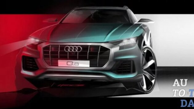 Немецкая компания продолжает постепенно раскрывать особенности предстоящей модели, публикуя все новые эскизы Audi Q8. Последнее тизерное изображение показывает клиентам Audi переднюю панель и идеально дополняет предыдущий снимок, разоблачивший внешний вид задней части. На фото доминирует достаточно массивная решетка радиатора с острыми углами, тонкие светодиодные фары, несколько складок вдоль капота, лобовое стекло, тонкие зеркала и большие колесные диски. Фактически, модель может получить более плавные линии, когда дебютирует через неделю на специальном мероприятии в Шэньчжэне. В основе автомобиля будет лежать платформа MLB Evo, ранее используемая для последнего Q7, Volkswagen Touareg, а также с Bentley Bentayga и Lamborghini Urus. При этом под капотом транспортного средства могут расположится различные четырех- и шестицилиндровые двигатели, включая 2,0-литровый агрегат с турбонаддувом, обеспечивающий 250 лошадиных сил и мотор V6 мощностью 355 лошадиных сил. Плагин-гибридная модель вместе с высокопроизводительными S и RS также появится, причем последняя получит отдачу в 530 лошадиных сил.