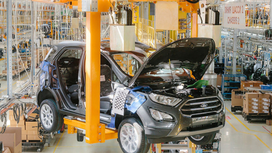 На заводе Ford Sollers в Набережных Челнах стартовало производство рестайлинговой версии кроссовера EcoSport. Эту модель делают здесь с 2014 года, а перед запуском обновленной версии конвейер был модернизирован. Первым сошел с него автомобиль в топовой комплектации Titanium Plus с двухлитровым мотором, полным приводом и автоматом. Ранее российские дилеры начали принимать заказы на обновленный кроссовер. Наши машины отличаются от европейской и американской версии наличием запасного колеса на пятой двери. За переднеприводную версию «ЭкоСпорта» придется выложить как минимум 959 000 рублей, за полноприводную – уже 1 229 000 рублей. Топовый вариант стоит 1 399 000 рублей, а с учетом дополнительных опций цена может уйти далеко за эту отметку. Машина доступна в пяти уровнях оснащения с тремя вариантами силовой установки. Базовый двигатель 1.5 имеет всего три цилиндра. Он развивает 123 л.с. и может сочетаться как с механикой, так и с автоматом, но привод – только передний. Двухлитровый атмосферник выдает 148 л.с. и идет в связке с АКПП и полноприводной трансмиссией. Оба мотора могут работать на бензине АИ-92. В базовую комплектацию вошли система стабилизации, две подушки безопасности, электропакет, аудиоподготовка. Для дорогих версий доступны, среди прочего, навигация, комбинированная отделка салона, система бесключевого доступа в салон и запуска двигателя, парктроник «по кругу», камера заднего вида, семь подушек безопасности, датчики света и дождя. Напомним, что после рестайлинга Ford EcoSport получил заметно переработанную внешность и абсолютно новую, современную панель приборов с отдельно стоящим дисплеем мультимедийной системы.