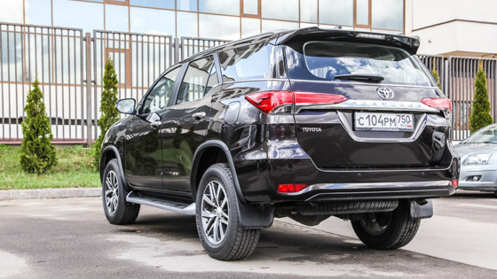 Спустя пару лет после того, как этот внедорожник от Toyota сошел с конвейера где-то в Таиланде, Fortuner наконец-то добрался и до России. Этот факт радует тем, что еще один честный внедорожник встретился лицом к лицу со средой, для которой и был создан, то есть с тотальным бездорожьем. Хорошей рекомендацией автомобилю служит хотя бы тот факт, что используемая на нем сверхпрочная рама ранее отлично проявила себя в конструкции пикапа Hilux. Впрочем, к Toyota Fortuner у нас традиционно имеется и ряд других вопросов, на которые мы попытались найти ответ в ходе очередного тест-драйва. Характерный скос переднего бампера недвусмысленно намекает на серьезные амбиции в проходимости. Заявленные углы въезда и выезда в 29 и 25 градусов только подтверждают это. Toyota Fortuner в каком-то смысле можно назвать возвышенным над грязью автомобилем. Судите сами, противотуманные фары и головная оптика заметно приподняты вверх, дабы чуть меньше жижи попало на них. Да и возможность проехать сквозь мини озеро глубиной до 70 сантиметров говорит о том, что внедорожник подготовлен почти к любым эксцентричным попыткам водителя поставить «японца» в безвыходное положение. Высокий статус внедорожника в интерьере подчеркнут кожаной обшивкой панели и сидений (комплектация Prestige) или одной только панели, если речь идет о версии младше той, что попала к нам на тест-драйв. В остальном, видно, что салон создавался с учетом эргономики и здравого смысла — все в расположении органов управления подвержено четкой логике и в меру аскетично. Например, даже сенсорный экран по центру лишен обычных кнопок, а электропривод кресла предусмотрен только для водителя, мол, остальные и вручную справятся. Как говорится, ничего лишнего. Дюжина подстаканников была обнаружена нами в салоне. Более приспособленный для чаепития автомобиль сложно себе представить! Счастлив будет тот, кто в лице Toyota Fortuner обнаружил свой идеальный 5-местный автомобиль с просторным багажным отсеком. Впрочем, даже те, кто приметил раскладывающийся третий ряд сидений, останутся довольны, если предполагается, что позади всех будут сидеть дети или просто «компактные» взрослые. Можно точно сказать, что вы вряд ли опробуете хотя бы половину из всех возможных конфигураций салона. Всего их заявлено три десятка, но многие, убедившись, что все нормально трансформируется, сдаются намного раньше. Стоит отметить, что производитель не стал полностью менять подвеску, но уделил больше внимания ее настройке, в результате чего внедорожник теперь может дать серьезную фору пикапу в вопросах комфорта пассажиров. 2,8-литровый дизельный двигатель, доставшийся Toyota Fortuner в наследство от того же Hilux, на более легком внедорожнике смотрится достаточно резво со всеми своими 177 л.с. Этому способствует как внушительный крутящий момент в 450 Нм, так и адекватная в переключении передач 6-ступенчатая автоматическая коробка. Из заслуживающих внимания минусов можем отметить характерный для большинства автомобилей с дизельным двигателем шум в салоне. В остальном к шумоизоляции других нареканий нет — даже по усыпанной мелким щебнем дороге Fortuner передвигается бесшумно, будто в мягких тапочках. В целом, японский внедорожник в России может быть принят очень тепло за счет умеренной стоимости и готовности в любой момент начать выполнение своих прямых обязанностей. При 