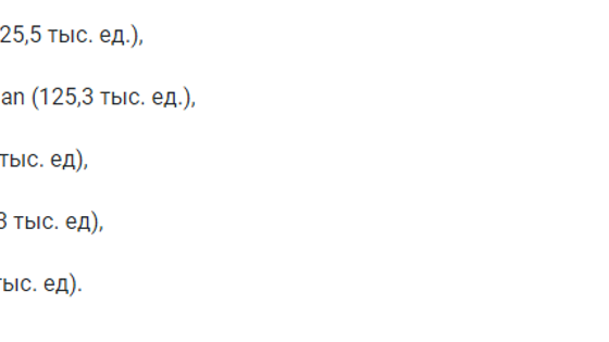 Аналитики назвали самые продаваемые модели новых автомобилей в январе—мае 2018 года в 44 странах Европы, включая Россию, Украину, Турцию и Молдову. Рейтинг возглавил Volkswagen Golf с продажами на уровне почти 243 тыс. штук, что на 8,1% превышает аналогичный показатель 2017 года, также в лидерах VW Polo (161 тыс. штук и снижение на 3,6%) и Renault Clio (161 тыс. штук, +0,3%), подсчитали в Focus2Move. В первую десятку самых продаваемых моделей новых автомобилей в Европе с начала 2018 года также входит Ford Fiesta (136 тыс. штук), Nissan Qashqai (132 тыс. штук), Skoda Octavia (125,5 тыс. штук) и Volkswagen Tiguan (125,3 тыс. штук). Также в первой десятке лидеров — Ford Focus (117 тыс. штук), Peugeot 208 (113 тыс. штук) и Citroen C3 (101 тыс. штук). Эксперты зафиксировали рост продаж Lada Vesta в России и других странах за 5 месяцев на 44%, до 41,5 тыс. штук, что позволило модели подняться в рейтинге топ-100 с 70 на 56 место. Также выросли продажи Lada Granta – на 10,3%, до 38,3 тыс. штук, но место в рейтинге изменилось с 55 на 65. Продажи легковых автомобилей в мире растут с 2009 года в пределах 2—3% в год. За последние пять лет мировые продажи новых автомобилей возросли с 80 млн до 94 млн единиц. В 2018 году прогнозируется рост авторынка до 98 млн легковых автомобилей, а в 2019 году – свыше 100 млн единиц.