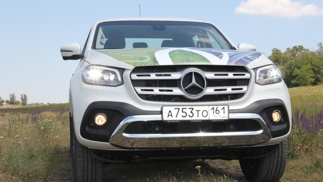 Марку Mercedes-Benz можно считать синонимом роскоши и престижа, но немцы постепенно отходят от консервативного стиля и выводят на рынок абсолютно не логичные для бренда автомобили. Разрыв шаблона произошел в тот момент, когда Mercedes-Benz представил модель, которая удивила абсолютно всех. Ей стал пикап X-класса. Для многих мерседесовкий пикап - своего рода неведомой зверушка, которая привлекает к себе внимание и вызывает неподдельный интерес со стороны окружающих. «Южный автомобиль» проверил, на что способен первый премиальный пикап. Что за зверь? Ниша среднеразмерных пикапов в модельной линейке Mercedes-Benz пустовала, до недавнего времени. Но, начнем рассказ о новинки с того, что самостоятельно Mercedes-Benz не разрабатывал пикап. Основой для него послужил Nissan Navara. Концерн уже не первый год сотрудничает с альянсом Renault-Nissan по части нишевых моделей. Сначала была коллаборация с Renault при запуске нового поколения Smart, теперь Mercedes-Benz скооперировался с Nissan ради выпуска пикапа X-class. Вообще признать в X-классе пикап Navara невозможно, так хорошо поработали дизайнеры. У «Мерседеса» полностью ниссановская кабина, но она переработана настолько хорошо, что родство с Navara выдают только боковые стекла. Все навесные элементы полностью оригинальные. Досталось пикапу Mercedes-Benz и задняя пружинная подвеска Кроме того, двигатели и коробки у Mercedes-Benz полностью свои. Внешне новый пикап X-class производит приятное впечатление — крупные фары головного освещения в стиле внедорожного флагмана GLS, крупная решетка радиатора с огромной трехлучевой звездой и такой же массивный бампер. На Nissan Navara мерседосовский пикап похож в профиль особенно формой кабины и кузова. Кстати в кузове можно увезти тонну груза. В качестве опции можно заказать крышку кузова или кунг, а на дно положить удерживающий пластиковый вкладыш. Салон В салоне автомобиля уши Navara откровенно не торчат, но просматриваются. Лично у меня сложилось впечатление что, из «Навары» выкинули дешевые элементы и заменили их дорогими. Мерседесовские руль, планшет мультимедиасестемы, тачпэд, кожанные кресла и круглые дифлекторы воздуховодов удачно вписаны в интерьер. Что касается кожи то она достаточно грубая по мерседесовким меркам не только на креслах, но и на панели приборов. В нашей модели на панели приборов есть декоротивная накладка под матовый металл, в более дорогих здесь будет пластиковый шпон под дерево. Наваровские уши торчат из тоннеля рычага коробки передач. Как известно, на последних моделях внедорожников Mercedes-Benz селектор выбора передач находится на руле. Рычаг коробки передач обрамляет серый грубый пластик — аналогичный ниссановскому. При этом блок управления климатом типично мерседесовский глянец. В нашем автомобиле кресла были обшиты кожей, но в топовых версиях ее можно скомбинровать с алькантарой. Руль небольшого диаметра, но это пожалуй самая мерседесовская деталь в салоне X-класса. При этом руль регулируется только по высоте, как у Nissan Navara. Планшет мультимедиасистемы перенесли с моделей Mercedes-Benz без изменений, но управлять ей с мерседесовской кобры-тачпэда лично мне не очень удобно. Получил X-class и более продвинутые электронные системы - автоматическое торможение, распознавание знаков, камеру кругового обзора и функцию прозрачный капот, система удержания в полосе и прочие высокотехнологичные прелести. На в