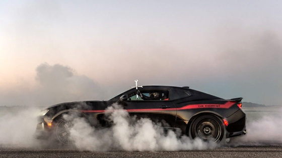 Американское ателье Hennessey Performance опубликовало на своем YouTube-канале видео 1000-сильной модификации Chevrolet Camaro, которую в компании называют The Exorcist («экзорцист»). В ролике можно услышать звук двигателя этого автомобиля. [Эволюция масл-каров: как изменились самые мускулистые автомобили за 50 лет](https://motor.ru/selector/musclecars.htm) Тюнер подготовил «Экзорциста» в противовес дрэговому Dodge Challenger Demon, который комплектуется 850-сильным (1044 Нм) восьмицилиндровым двигателем объемом 6,2 литра. У тюнингового «Камаро» двигатель такого же объема, оснащенный механическим нагнетателем. Также агрегат отличается от серийного другим блоком цилиндров, иным наддувом, доработанным распредвалом и впуском. С места до 96 километров в час «Экзорцист» разгоняется за три секунды, а за 10 секунд преодолевает дрэговую дистанцию в четверть мили (402 метра). У «Демона» эти же упражнения занимают 2,3 и 9,65 секунды соответственно. Максимальная скорость купе от ателье Hennessey Performance составляет 349,2 километра в час. Для того чтобы превратить обычный Chevrolet Camaro ZL1 в «Экзорциста» потребуется 55 тысяч долларов. Выпуск «Демона» завершен. Последний экземпляр продали вместе с «Вайпером» за миллион долларов.