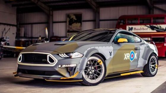 Автомобиль получил боевой камуфляж, которым обладали самолеты периода Второй мировой войны. Полное название сделанной в единственном экземпляре машины - Ford Mustang GT Eagle Squadron. Она специально создана для участия в предстоящих заездах на Goodwood. Из названия понятно, что авторы хотели внешним видом почтить память военных летчиков, поэтому машина получила окрас во многом схожий с боевым истребителем. Так, на автомобиль нанесены серо-зеленые маскировочные оттенки с добавлением желтых вкраплений. К ним можно добавить добавление элементов из карбона, новые бампера, спойлеры и дополнительные накладки на пороги дверей. Для повышения управляемости была существенно модифицирована конструкция подвески. Под капотом мастера поместили «заряженный» двигатель V8 с мощностью в 700 лошадиных сил. О трансмиссии точных сведений нет, однако, с одинаковым успехом на машине могут работать как АКПП, так и механическая коробка передач. После Goodwood Ford Mustang GT выставят на аукцион. Вырученные от продажи автомобиля средства пойдут на финансирование молодежных программ.