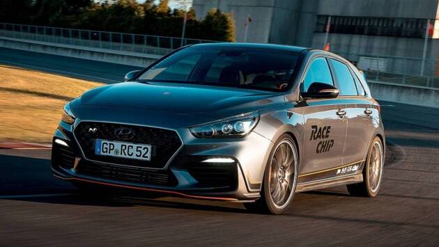 Тюнер решил сделать из корейской пятидверки «убийцу» Volkswagen Golf GTI. «Заряженный» хэтчбек Hyundai i30 N является одним из самых «свежих» в своем сегменте, успев уже найти своих приверженцев и отобрав часть покупателей у своих соперников в лице Volkswagen Golf GTI, Ford Focus ST и Honda Civic Type R. Но, всегда найдутся неудовлетворенные стоковым исполнением автомобиля, за счет таких людей и делают свой бизнес тюнинг-ателье. Фирма RaceChip, базирующаяся в немецком городе Гёппинген, одна из их числа. Они решили обратить внимание на i30 N и «выдавить» из его двухлитровой «турбочетверки» больше мощности. Напомним, двигатель в топовой версии Performance выдает 271 л.с. Тюнерам же удалось повысить мощность до 309 л.с., что, возможно, не выглядит впечатляюще, но с крутящим моментом дело обстоит получше – тягу удалось увеличить со стоковых 353 Нм до 498 Нм. После чип-тюнинга, специалисты RaceChip не успокоились и продолжили работу. Ее результатом стала модернизация выпускной системы за счет распределительной трубы HJS, с которой отдача была повышена до 316 л.с. и 524 Нм крутящего момента. Помимо мощностных апгрейдов, хот-хэтч получил и некоторые другие изменения. Например, вместо стоковых колес, был установлен набор литых OZ Racing Leggera HLT, обутых в резину Michelin Pilot Sport 4S. Еще автомобиль получил новые пружины, с которыми дорожный просвет уменьшился на 15 мм и комплект стабилизаторов поперечной устойчивости от Eibach. Завершающим штрихом стало оборачивание кузова в пленку силами Schwabenfolia. Аналогичный пакет тюнинга RaceChip может предложить для модели Hyundai Veloster N, продаваемой на американском рынке. Напомним, на российском рынке хэтчбек Hyundai i30 не продается и недавно наш портал разбирался, почему так. По материалам: www.kolesa.ru