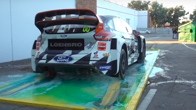 Команда The Hoonigans проверила, может ли Ford Focus, подготовленный для ралли-кросса, тронуться с места на очень скользком покрытии. Для этого машину поставили на специальную платформу с бортиками, внутрь которой налили жидкого мыла. В первом испытании «Фокус» трогался со включенным лонч-контролем, во втором — водитель, канадский гонщик Стив Арпин, быстро переключал передачи — с первой по шестую. Первый тест подтвердил, что несмотря на минимальное сцепление колес с поверхностью механический полный привод и высокая мощность — около 650 лошадиных сил — позволяют Focus RS RX выбраться из «мыльной ловушки». При этом колеса продолжают прокручиваться вплоть до шестой передачи. Видео: TheHoonigans Ранее The Hoonigans превратили универсал Volvo V60 в безумный «пончикомобиль». Для этого машину разрезали пополам, и на место задней части установили трубчатый каркас с колесами от магазинной тележки.