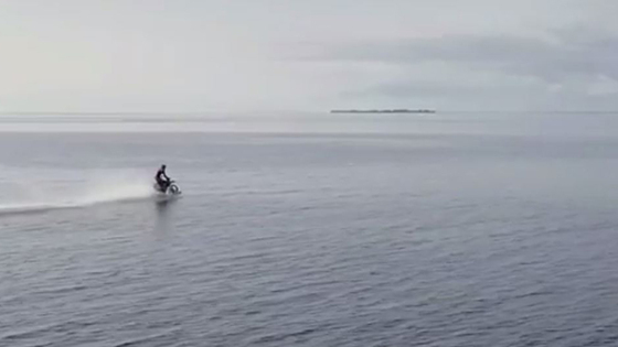 Воплотить сон в реальность: мотоциклист разогнался и проехал по поверхности воды