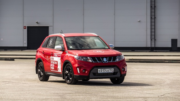 Suzuki Vitara без приставки Grand (предоставлен официальным дилером «Автомир») похож на своего квадратного предшественника, но здесь формы всё-таки более сглаженные и современные. Автомобиль стал компактней, уменьшился в длину и ширину. Прямой наследственной чертой является форма капота с характерными прямыми загибами на краях. Растянутые фары, радиаторная решётка под «Форестер», вертикальные светодиодные ходовые огни в бампере — всё это венчает крупный логотип Suzuki на решётке. Сбоку видно, что полоса остекления сужается от передней части к задней, отчасти придавая машине стремительный вид. Корма кажется усечённой, хотя в принципе пропорции соблюдены. Сзади выделяются большие многоугольные фонари, как бы оттянутые вниз за серединку. Широкая багажная дверь, небольшой спойлер на стекле, незамысловатый бампер. В салоне переднюю панель венчают три кругляша — два воздуховода и часы между ними. Сама передняя панель сделана вроде как из мягкого пластика, но на ощупь он практически жёсткий. Жёсткие здесь и двери, есть только небольшой кусочек мягкого материала на подлокотнике. Из украшений — хромированные ручки и пластиковые серебристые вставки. Блок климата оформлен глянцевым материалом, кнопки и ручки здесь удобные, логика управления понятна. Сверху расположен экран мультимедийной системы с неплохим разрешением и простеньким оформлением. Можно послушать радио, подключить смартфон, поменять кое-какие настройки. В звучании штатной акустики достаточно низких частот, но не хватает верхов. А настройка звука не позволяет регулировать средние частоты. Приборная панель с двумя шкалами хорошо читается — цифры крупные, нет лишних деталей. Между шкалами цифровой дисплей, куда выводится информация бортового компьютера, данные о режимах движения. Комбинированные сиденья с кожаными боковинами кажутся комфортными и дают приемлемую боковую поддержку. Пространство спереди довольно компактное, но места хватает. Центральная консоль оформлена простеньким чёрным пластиком, ручка селектора АКП передвигается с громкими щелчками, к ней надо применять некоторое усилие. Центрального подлокотника нет. Сзади не тесно, но втроём здесь лучше долго не ехать. Из удобств только электростеклоподъёмники. Объём багажника 375 литров, здесь двойной подпол — сначала органайзер, потом ниша с запасным колесом. Основной пол можно удобно закрепить в поднятом состоянии. По капотом — 1,4-литовый турбомотор, выдающий 140 сил, которых полноприводному кроссоверу вполне хватает. Разгоняется машина до сотни за 10,2 секунды, автомат работает чётко и незаметно, на педали газа есть некая пауза, но в целом Vitara — отзывчивый автомобиль. На невысоких оборотах мотора в салоне не слышно, хотя есть вибрационный фон от него. После 4 тысяч оборотов звук двигателя уже становится громким и натужным. На шоссе к этому звуку добавляется фон из задней части салона, слышны колёса. На этой машине можно ставить дополнительную шумоизоляцию. Неровности подвеска отрабатывает с умеренным уровнем жёсткости, не сказать что автомобиль мягок. Зато и управляется он отзывчиво, сильно не кренится, чутко слушается руля, который «в нуле» практически не имеет мёртвой зоны. В автоматическом режиме движения система полного привода подключает заднюю ось при пробуксовке передних колёс. На бездорожье можно в