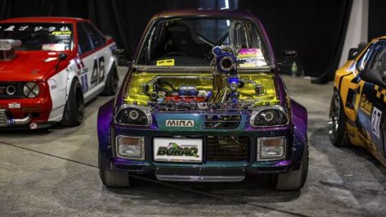 Одним из наиболее необычных проектов, представленных на Art of Speed была Daihatsu Mira, машина класса «K», переделанная для участия в дрэговых гонках. Двигатель, до тюнинга бывший малолитражным 660-кубовым мотором, получил больше всего изменений, и во многом является уникальным механизмом: -литраж был расширен до одного литра; -цилиндры были отлиты самостоятельно, причем владелец долго подбирал 8-сантиметровые поршни так, чтобы они идеально подходили к машине; -система компрессии будет обеспечивать наддув мощностью в 3 бар; -турбина вынесена над капотом почти на уровень крыши; При 10 тысячах оборотов в минуту все вышеперечисленные решения должны дать мощность в 400 лошадиных сил. Хозяин автомобиля рассчитывает использовать метанол вместо бензина или дизеля, что может дать машине еще больше мощности. Радиатор помещен в салоне, слева от места водителя, а воздухозаборники находятся в заднем крыле справа. Отдача от мощности, превосходящей 400 лошадей будет еще больше, чем на стандартной Daihatsu Mira, так как автомобиль прошел длительную реконструкцию с целью снижения массы - он весит всего 640 килограмм. В ходе реконструкции одним из важнейших инженерных решений было изменение материалов, из которых сделан кузов, так, например, обвес выполнен из карбона, а стекла из поликарбоната.