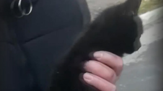 Спасенный из-под капота бездомный котенок тут же обрел хозяйку