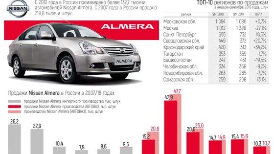 Выпуск Nissan Almera приостанавливается на территории России. К такому решению японцы пришли из-за переориентации на кроссоверы и внедорожники. Теперь Nissan будет реализовывать в РФ только кроссоверы и нишевый спорткар версии GT-R. Выпуск седанов решено было сократить с автомобиля Nissan Almera, который выпускался на мощностях бренда «АвтоВАЗ» в Ижевске. Цена Almera отечественной сборки с двигателем 1.6 на 109 л.с. составляет примерно 667 – 839 тысяч рублей. Как сообщают «Дни-24», 17 октября с российского конвейера вышел последний экземпляр Almera с черным кузовом и комплектацией Comfort Plus. При этом сотрудничество Nissan и «АвтоВАЗа» было прекращено досрочно еще в июле этого года. К слову, за это японцы заплатили существенную неустойку в размере 1,8 млрд рублей. Ранее «Свободная пресса» сообщала, что эксперты назвали десятку моделей самых бюджетных машин на территории РФ. Вершину рейтинга занимает седан Lada Granta стоимостью 409,9 тысячи рублей. На втором месте значится седан Lada Priora за 424,9 тысячи, на третьем — лифтбэк Lada Granta за 434,9 тысячи. Новости из мира авто: Составлен топ-3 бюджетных автомобилей, по которым скучают россияне