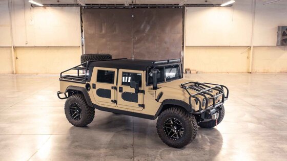 Напомним, рестомод (restored and modernized) — как раз чисто американское изобретение. Так называют автомобили, которые не только старательно отреставрированы, но и основательно модернизированы с технической точки зрения. Обычно в рестомоды устанавливают современные агрегаты, при этом бережно сохраняя аутентичный стиль и стараясь внешне ничем не выдавать проведённые работы. Ну или пытаются сделать автомобиль чуть лучше. К примеру, американское ателье Mil-Spec Automotive из Детройта ориентируется на тех, кто любым автомобилям предпочитает старые добрые «Хаммеры» – огромные, неповоротливые и прожорливые, но харизматичные, устрашающие и проходимые. Таков именно «оригинальный» Hummer H1, сделанный из армейского внедорожника, а не похожие на него поделки на базе Chevrolet вроде H2 и H3. Детройтские тюнеры превращают «Хаммер» в ещё более брутальный аппарат. Под капот внедорожника они внедряют могучий дизельный мотор V8 Duramax объёмом 6,6 литра, мощностью 500 лошадиных сил и крутящим моментом 1355 Н·м. Коробка передач – шестиступенчатый «автомат» Allison. Крыша сделана из авиационного алюминия, а на землю автомобиль уверенно опирается здоровенными 40-дюймовыми колёсами с расширенной на 203 миллиметра колеёй. Сам Hummer H1 стал на 178 миллиметров шире. Внедорожник также оборудован силовыми бамперами, защитными дугами для оптики, креплением для запасного колеса, дополнительным светодиодным освещением, лебёдкой и алюминиевым шноркелем. Кузов окрашен в цвет под названием Desert Tan – «пустынный загар». Интерьер «Хаммера» довольно аскетичный, но есть отделка натуральной кожей, хорошая аудиосистема и электростеклоподъёмники. Стоимость автомобиля составляет 249 тысяч долларов.