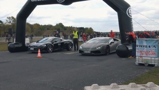 В гонке на скорость с участием McLaren 650S, Mercedes-AMG GT R и Lamborghini Huracan бонусом приняла участие Audi RS7. Гонки на скорость потрясающи и встречи суперкаров в аэропорту Weeze в регионе Нижнего Рейна Германии доказывают это. Это не выставка экзотических машин, где вы можете наблюдать за их блеском на стендах, это встреча владельцев суперкаров, где можно прочувствовать всю мощь и дикий нрав впечатляющих автомобилей. Новое видео на YouTube показывает несколько заездов с недавнего события в аэропорту. Там можно понаблюдать за поединками между McLaren 650S и другими суперкарами, включая Mercedes-AMG GT R, Lamborghini Huracan, Mercedes-Benz SLS AMG и пр. К сожалению, водитель британского зверя в автомобильном обличии постоянно поздно стартует. Но не стоит на это обращать внимания, возможно он занимается этим ради удовольствия и не хочет выжимать все соки из своей машины. Но, несмотря на это, можно увидеть, насколько быстр автомобиль даже несмотря на эту заминку. Даже с начальным преимуществом Mercedes-Benz SLS AMG на финише уступает более новому суперкару от McLaren. Ожидаемо Lamborghini Huracan легко завоевывает победу и даже непонятно, удивительно или нет, но Audi RS7 держится совсем рядом со своим более мощным противником. Расположение камеры не дает нам точного ответа, какая из машин вырывает победу, поэтому мы просто будем судить по тому соотношению на трассе, что увидели. 650S теперь рассматривается как модель предыдущего поколения от McLaren, но остается весьма впечатляющей. Имея 641 л.с. (478 кВт) и крутящим моментом в 678 Нм от двухцилиндрового 3,8-литрового V8 суперкар с шасси из углеродного волокна разгоняется до 62 миль в час (100 км/ч) всего за три секунды.
