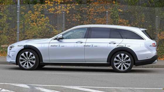 Вероятно, желая внести больше уникальных отличительных черт в экстерьер E-Class All-Terrain, разработчики модифицировали передний и задний бамперы, головную оптику и задние фонари, а также решетку радиатора. Сегодня в Сети появились самые первые фото обновленного универсала-вседорожника, у которого именно указанные области закрыты камуфляжной пленкой.