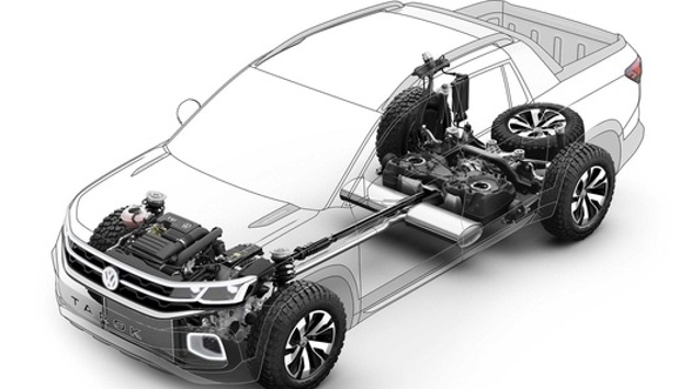 Концепт, несмотря на достаточно внушительную грузоподъемность размером в одну тонну, построен на модульной платформе MQB и получил полностью независимую подвеску. Выставочный VW Tarok оснащен 1,4-литровым 150-сильным турбомотором, шестидиапазонным автоматом и системой полного привода, но уже известно, что серийным пикапам в качестве альтернативы предложат двухлитровый дизель. На концепте реализована оригинальная система трансформации грузовой платформы. "В базе" пикап имеет четырехдверную кабину и грузовую площадку длиной 1,2 м. Однако, задний ряд сидений можно сложить, а нижнюю часть перегородки между кузовом и кабиной – откинуть. В этом случае длина платформы увеличится до 1,86 м. Но и это еще не все: задние сиденья можно полностью извлечь из салона. Если при этом еще и разложить задний борт, то VW Tarok сможет перевозить длинномеры до 2,8 м. Интерьер пикапа собран из хорошо знакомых фольксвагеновских "кирпичиков", а вот внешность для пикапа придумали полностью оригинальную, хоть и строго выдержанную в корпоративном духе. Занимались этим дизайнеры бразильской студии, которые не преминули украсить концепт массивными серебристыми центральными стойками, пластиковыми накладками по периметру "багажника", обилием светодиодной подсветки (светится даже решетка радиатора) и стеклянной крышей. Что из этого доживет до конвейера, пока неизвестно, но утверждается, что концепт VW Tarok можно рассматривать, как предсерийный прототип. На рынок Латинской Америки, где подобные пикапы пользуются традиционной популярностью, Tarok выйдет уже к концу следующего года. Однако, по слухам, в VW всерьез рассматривают возможность превратить пикап в глобальную модель. А это означает, что примерно в 2020 году VW Tarok может появиться и в нашей стране – учитывая, насколько благожелательно россияне отнеслись к его старшему брату VW Amarok.