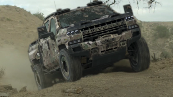 Оборонное подразделение General Motors разместило на своем сайте ролик, демонстрирующий военизированную версию пикапа Chevrolet Silverado ZH2. По предварительной информации, внедорожник построен на базе гражданской машины следующего поколения и оснащен силовой установкой на водородных топливных элементах.