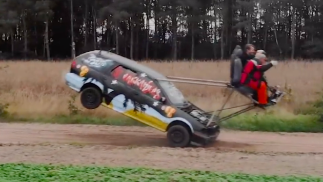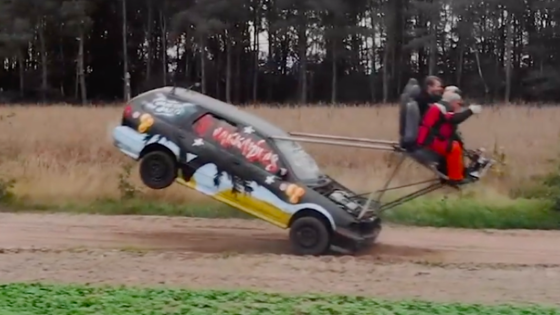 Команда «Гараж 54» из Новосибирска и YouTube-блогер MasterMilo82 собрали Volvo V40 с вынесенными за пределы салона сиденьями и рулем. Их установили впереди автомобиля на специальном каркасе. Из-за смещенного центра тяжести при каждом торможении универсал отрывал задние колеса и в один момент коснулся каркасом земли. В ролике авторы проекта показали, как ездит такой автомобиль, сделанный по подобию «Купера» мистера Бина. В одном из эпизодов серии известный комедийный персонаж сидел на крыше хэтчбека в кресле, управляя машиной при помощи привязанных к рулю веревок и нажимая на педаль газа шваброй. С Volvo V40 поступили по-другому: вынесли рулевое управление из салона. Видео: Garage 54 ENG Это уже не первый раз, когда «Гараж 54» делает что-то необычное. Ранее команда построила шестиколесную Lada 4x4, на год закопала машины под землю, а потом выкопала и попыталась их завести, а также построила идеальный автомобиль для пробок.