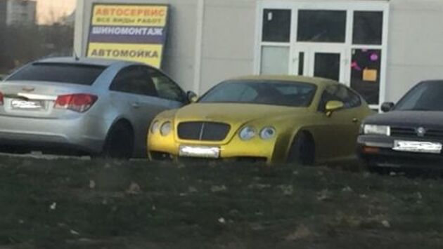 На воронежской шиномонтажке был замечен золотистый Bentley Continental GT
