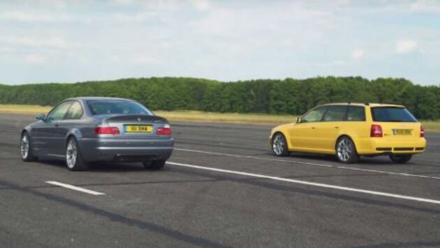 Представляем вам ещё одну схватку. BMW E46 M3 CSL сражается против Audi RS4 B5. Надо отметить, что оба автомобиля были произведены к концу 1990-х годов. Примечательно, что более новый Audi RS4 Avant недавно выиграл у BMW M3 CS. Однако с другими двигателями и трансмиссией под капотами этих старых автомобилей результат непредсказуем. Давайте разберемся с характеристиками. E46 M3 CSL легче стандартного M3 на 110 кг. Он оснащен 3,2-литровым шестицилиндровым безнаддувным двигателем с прямым впрыском, который может развивать мощность до 365 лошадиных сил, передавая мощность на задние колеса с помощью шестиступенчатой коробки передач SMG-II Drivelogic с управлением запуском. Audi RS4 Avant B5 имеет большое преимущество: он с полным приводом Quattro и 2,7-литровым V6 biturbo с 381 л.с. Также он тяжелее примерно на 200 кило и имеет шестиступенчатую механическую коробку передач, что означает, что его судьба на тяговом полосе будет зависеть от навыков его водителя. Итак, посмотрите видео и узнайте победителя.