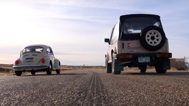 Очень медленный дрэг: Suzuki из 80-х против классического VW Beetle