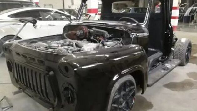 В 2015 году, одному из механиков гаража пришла идея сделать необычный автомобиль, имеющий кабину от советского грузовика ГАЗ-53. Работы начались через два года. Об их завершении и речи нет. Уже сейчас есть общие очертания и представления об автомобиле. С виду, он похож на американские пикапы, которые выпускали в шестидесятых, семидесятых годах прошлого века. Американские мастерские любят переделывать и тюнинговать такие машины, сильно занижая их. В отличие от них, отечественный образец не будет иметь ни одной хромированной детали. Только темные тона. Чёрный цвет скрывает пухлые формы, при этом придает стиль и элегантность. Конструкторы уверены, что на дороге их пикап будет привлекать к себе много внимания. За основу ребята взяли шасси от Toyota Crown. Силовой агрегат тоже японский, трехлитровый бензиновый двигатель, с мощностью 220 лошадиных сил. Тип привода задний. О других данных разработчики пока не распространяются.
