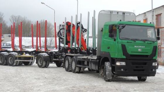 Руководители производственной компании из Братска заказали автопоезд-перевозчик, способный перевозить до 90 тонн. Для разработки специализированного грузового автомобиля, конструкторы «МАЗ-МАН» и ПК «Русский грузовик» объединили свои силы. Выпущенный грузовик прошёл все необходимые испытания и уже отправлен заказчику. Модель оснащена полным приводом и имеет базу колёс 6Х6, а также прицеп, разработанный на четыре оси. В январе 2019 года производители создали шасси МАЗ-МАН-636559, которое и лежит в основе сортиментовоза. Более того, специалисты производственного объединения «Русский грузовик» создали оборудование, с помощью которого можно будет осуществлять погрузку и разгрузку. Кроме центрального топливного бака, рассчитанного на 500 литров, грузовик имеет дополнительный бак на 300 литров. Под капотом стоит мотор D2676LF09, мощность которого 480 лошадиных сил. В качестве трансмиссии производители выбрали ZF EcoSplit 4 16S2531TO на 16 скоростей. При этом две из них являются задними. Дополнительным преимуществом для водителей является комфортабельный салон, дополненный климат-контролем и полноценным спальным местом. Так как грузовику предстоит работать в тяжёлых северных условиях, машина дополнительно оснащена «северным пакетом».
