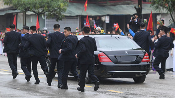 Приехав на станцию Донг-Данг на специальном бронепоезде, Ким Чен Ын пересел в черный лимузин. До столицы Вьетнама оставалось 120 километров пути. А последние несколько сотен метров до места встречи машину окружали 12 бегущих охранников. Ранее их уже видели рядом с автомобилем "любимого руководителя" на саммите в Сингапуре.