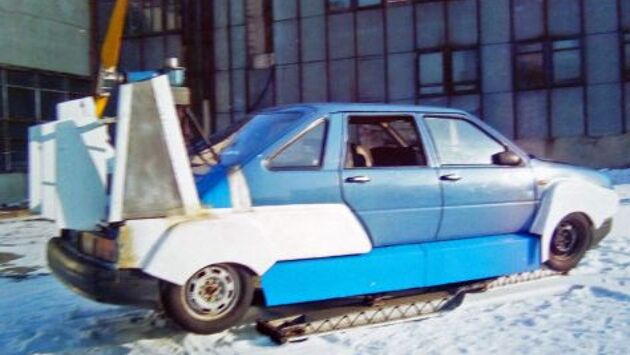 В России сконструировали автомобиль на базе ИЖ-2126, который способен трансформироваться в аэросани. Гибрид автомобиля и аэросаней оснащен четырьмя лыжами, которые автоматически выдвигаются. Передняя пара лыж является управляемой. Они складываются в специальные ниши, расположенные между передними и задними колесами. Шасси, на котором установлена вся конструкция, несколько длиннее, чем у ИЖ-2126. Поэтому колесные арки как спереди, так и сзади изготовлены и установлены новые. При трансформации автомобиля в аэросани в дело вступает пропеллер с двумя лопастями. Конструкция пропеллера закрепляется в задней части кузова автомобиля. Рядом с пропеллером расположены специальные рули, которые помогают направлять потоки движущегося от пропеллера воздуха. Таким образом, повышается маневренность саней. Автомобиль-аэросани окрашен в бело-голубые и синие цвета. Точной информации по работе всех узлов и механизмов этой машины нет. Неизвестно сохранился ли задний привод для передвижения автомобиля по автотрассам. Хэтчбек ИЖ-2126 получил вторую жизнь. Такая модель передвижения в зимний период по бескрайним российским просторам.
