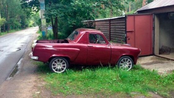 В городе Санкт-Петербурге продается самодельный пикап, который был изготовлен на базе советского легкового автомобиля «Москвич-403». Если бы автомобиль El Camino был разработан и произведен в Российской Федерации или в Советском Союзе, то он мог бы выглядеть похожим образом. На базе автомобилей «Волга» горьковского автозавода были машины класса пикап. Проект, созданный на базе легковой машины «Москвич-403», первый в своем роде. Советский ретро-автомобиль стал основой для интересного эксперимента. Часть кузова легковушки была срезана. Задние стойки вместе с задним стеклом были максимально передвинуты вперед. Соответственно, демонтированы задние двери. Освободившееся в задней части кузова пространство было превращено в грузовой отсек. Грузовая платформа открытого типа. Внутренняя отделка этой грузовой платформы на снимках не видна. Пикап оснащен литыми колесными дисками. Внутри салона установлена пара более современных сидений красного цвета. В целом, внутренняя отделка салона оставлена в стиле 60-х годов. По мнению одного из автолюбителей, переключатель скоростей у оригинального «Москвича-403» имел подрулевое расположение. В пикапе он имеет напольное размещение. Продавец хотел бы получить за свой переделанный «Москвич-403» всего 75 000 рублей.