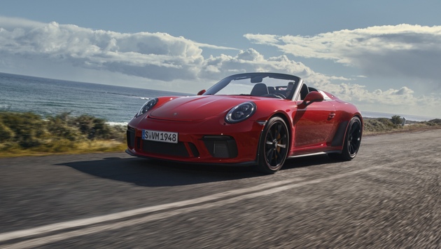 Компания Porsche представила в Нью-Йорке серийный вариант особого 911-го -- Speedster. Драйверский спорткар построен на шасси 911 GT3 и оснащен 4,0-литровым оппозитным «атмосферником». Кроме того, он прошел интенсивный курс по снижению массы в Porsche Motorsport. Новинка получила уникальные настройки активных опор двигателя и подруливающего механизма задних колес. Двигатель — 4,0-литровый «оппозитник» мощностью 509 лошадиных сил и 469 Нм крутящего момента — такой же, как на 911 GT3 и 911 GT3 RS. Отличие — индивидуальные дроссельные заслонки, которые обострили реакции до уровня гоночного 911 GT3 R. Спидстер предлагается исключительно с шестиступенчатой «механикой». С нуля до 60 миль в час (97 километров в час) машина разгоняется за 3,8 секунды. Максимальная скорость -- 309 километров в час. С целью снижения массы 911 Speedster оборудовали облегченными дверными панелями с сетками вместо карманов и лямками вместо ручек. Внешние панели, в частности, крышка багажника, передние крылья и обтекатели, изготовлены из карбона. Передняя и задняя часть кузова выполнены из полиуретана. Тормоза — карбон-керамика, которые на 50 процентов легче стандартных. У спорткара по умолчанию нет кондиционера, мягкая крыша устанавливается вручную. Трансмиссия на 18 килограммов легче робота PDK, а общая масса автомобиля составляет 1465 килограммов. Тираж Porsche 911 Speedster составит 1948 экземпляров, а его выпуск приурочат к 70-летию марки. Внешне спорткар ничем не выделяется, кроме дизайна задней крышки, хотя представленный в прошлом году на парижском автосалоне концепт имел интересную особенность — установленную посередине капота горловину топливного бака, как у машин пятидесятых годов.