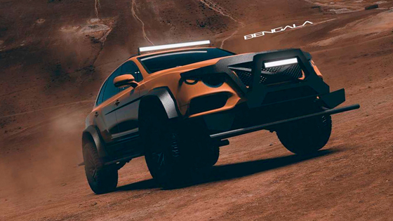 Пресс-центр марки Bentley из Великобритании накануне вечером выложил в Сеть фотоснимки обновленной вариации своего люксового паркетника Bentayga. Стоит отметить, что новое творение получилось совершено не таким, каким мы его ожидали увидеть в данном сегменте автомобилей премиум-класса. Согласно заверению создателей из Bengala, авто удивительным образом сочетает в себе роскошь с «брутальной внешностью и выдающимися характеристиками». Совместно с представителями из испанской дизайнерской студии Bengala Automotive Design SL, планируется создание всего 15 уникальных исполнений внедорожного паркетника, который называется Bentley Bentayga Bengala. Это авто демонстрирует совершено другой подход к люксовому виду британского кросса. При первом взгляде на авто можно отметить внедорожный характер увидевшего свет кросса Это явно просматривается на его головной части, где красуется оригинальный «кенгурятник» с линией из светодиодов. Новинка приобрела переосмысленную фальшрадиаторную решетку Bentayga, которая придает автомобилю внешность, сильно смахивающую на танк. Кроме того, сложно не отметить появление дополнительной линии из светодиодов у фронтального стекла. Кроме значительно поменявшейся головной части, премиальный Bentley Bentayga может похвалиться наличием расширенных арок колес, в которых установлены кованые диски колес Dillinger. В задней части «танка» имеются подвеска и шины Bentayga для эксплуатации по бездорожью. А еще новинка приобрела большой ряд элементов из углеродного волокна. Читайте также о том, что представители тюнинг-ателье превратили люксовый Bentley Bentayga в автомобиль для рыбалки.