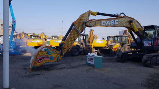 6 июня в Москве прошёл фестиваль «Аврора-Драйв», одним из основных организаторов которого стала компания CASE. Главной темой оформления был выбран японский стиль. На нём представители компании продемонстрировали новую линейку экскаваторов C в России, а также рассказали о технических характеристиках машин этой серии. Полная масса моделей – от 13 до 30 тонн. Наиболее примечательным экскаватором на фестивале «Аврор-Драйв» стала модель CASE CX300C, оформление которого было выполнено в стиле огнедышащего дракона. Мощность его двигателя равна 284 лошадиным силам, а вес машины – почти 30 тонн. По заявлению представителей компании CASE, ключевая особенность новой модели – 5 автоматических функций, благодаря которым расход топлива удалось снизить на 8% по сравнению с ранее выпущенной машиной серии B. Оператор может управлять экскаватором в трёх режимах: автоматическом, высокоскоростном и с приоритетом мощности работ. В рамках презентации CASE CX300C управляя новым экскаватором, оператор продемонстрировал высший пилотаж – он смог закрыть спичечные коробки ковшом, причём и по очереди и одновременно, а затем к этому навесному оборудованию прикрепили бутылку мартини и разлили напиток из неё по бокалам.
