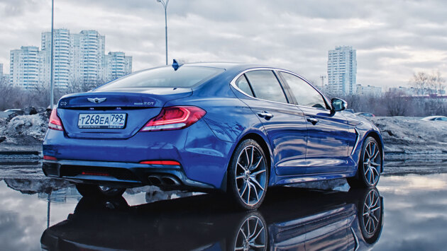 Когда Genesis только появился еще не под собственным суббрендом, а как Hyundai, машина уже ехала на уровне японцев классической компоновки. В ней все работало на уровне и подвеска, и трансмиссия, и двигатель. Это был первый успех на публике. Но все победы и награды она собирала лишь в странах, где магия брендов не так сильна, а люди больше доверяют калькулятору. Я помню, как выводил спортивную версию купе с V6 на трассу Cеверной петли в далеком уже 2011 г. Так вот, в избалованной автомобилями Германии на парковке Нюрбургринга корейская диковина была большим шоустопером, чем Caterham или VW Transporter с мотором от Porsche. К слову сказать, заднеприводное шасси тогда отработало отлично и время показало хорошее, но смотрели на тот Genesis не столько с уважением, сколько с удивлением. Но в России, с нашим тогдашним культом брендов, попытки пробиться в высшую лигу выглядели тщетными. Прошло 8 лет, и все изменилось. Кто мог представить себе, что к корейцу приложат руки топ-инженеры BMW M, а Hyundai запустит-таки свой премиальный суббренд? Сейчас кажется, что Genesis с нами давно. Незаметно как-то проверили, поверили и привыкли. К тому же с очередным кризисом люди научились пользоваться и калькулятором, и конфигуратором. Прошлый месяц я провел с Genesis G70 в спортивной ипостаси. Все было замечательно, но удивлял большой расход топлива двигателя мощностью 247 л.с. Сейчас у нас версия Supreme, 197 л.с. И знаете, спорта в ней едва ли меньше нет, конечно, красных тормозных суппортов Brembo, но недостаток 50 лошадей чувствуется не особо. Разница в характере моторов еще какая-то ловится, а в динамике почти нет. Мощный двигатель воспринимается просто темпераментнее, если жать педаль в пол. Почему? Крутящий момент у двигателей попросту один в один 353 Нм в диапазоне 1400-4000. Однако мощность 247-сильного продолжает расти к 6200 об/мин, в то время как заявленные 197 сил младшего двигателя вырабатываются с 4000 до 6200 уже без роста к отсечке. Вот этим и объясняется 0,8-секундная разница в разгоне до сотни 8,3 против 7,5. Много это или мало решайте сами. Я лишь добавлю, что этот не рост мощности после 4000 об/мин обернулся еще и снижением расхода топлива. В таком же чисто московском режиме у нас выходили куда более объяснимые 14,5 литра на сотню, нежели спортивные 17,5. А за весь месяц средний устаканился на 12,1. Обе машины роскошно оснащены и выходят к рубежу трех миллионов. Но при такой специфической разнице в моторах, а также безальтернативно предлагаемого в базе полного привода, становится интересно рассмотреть цены и оснащение других версий. И вот там мы находим, что менее премиально укомплектованный Genesis G70 Premier с тем же мотором, как у нашей топ-версии, ценят уже в 2 149 000 рублей. С чем остаемся, сэкономив на целый Hyundai Solaris? С двухзонным климатом, системой трогания на подъеме, ножным стояночным тормозом, электронным селектором коробки, электроскладываемыми зеркалами с повторителями, круизом и стеклоподъемниками, отделкой искусственной кожей. Теряем полный премиальный комплект электронных помощников, светодиодный свет, электрорегулиовки с памятью, панорамную крышу с люком, смарт-кей и проекционный дисплей. Как видите, выбор широк и в деньгах, и в оснащении. Драйв же останется породистым, каким бы ни был набор оснащения. Дмитрий Соколов
