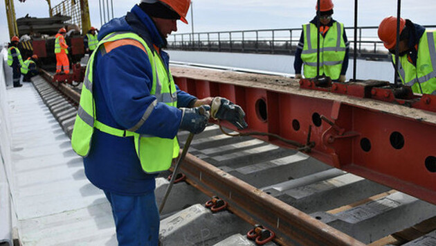 Первый путь железнодорожной части Крымского моста полностью проложен — строители сомкнули рельсы, ведущие с полуострова на материк, передает РИА «Новости». Колея длиной 19 км состоит из пяти тысяч тонн рельсов и 38 тысяч железобетонных шпал.
