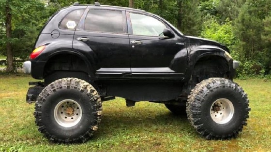 Автолюбитель из Ричмонда сделал из Chrysler PT Cruiser брутальный вездеход и выбрал для него более подходящее имя -- «Bruiser» («Борец»). Этого монстра можно купить всего за 4,8 тысячи долларов. Из объявления, опубликованного на Facebook, следует, что под капотом у PT Bruiser установлен 5,6-литровый мотор Mopar V8, который сочетается с «автоматом» и раздаточной коробкой, подключенной через карданный вал. Отдача двигателя не уточняется, однако на старых Plymouth 70-х годов такой агрегат выдавал около 275 лошадиных сил. В списке оборудования указаны 18-дюймовые алюминиевые диски с 44-дюймовой грязевой резиной и гидроусилитель руля. Судя по фотографиям этого бигфута, его лучшие дни уже позади, да и сам тюнинг выполнен довольно кустарно -- чего стоит только оформление днища автомобиля. Этим, по всей видимости, и оправдан скромный ценник в 4,8 тысячи долларов (чуть более 300 тысяч рублей). Ранее был представлен бигфут из кабриолета Rolls-Royce Phantom. Тогда тюнеры взяли лишь кузов от «Фантома», а базу с гигантскими колесами построили в Китае.