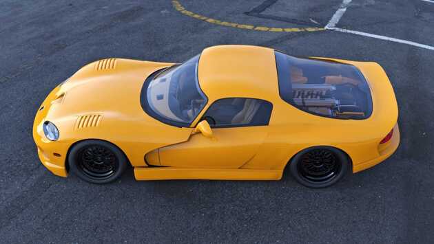 Независимый автомобильный дизайнер Абимелек Ареллано решил замахнуться на американский спорткар Dodge Viper и сделал ему операцию по трансплантации «сердца» --- к сожалению, лишь на экране компьютера. Но результат впечатляет! Брутальный Dodge Viper начали выпускать в далёком 1992 году. Агрессивный облик «Гадюки» разработал Том Гейл, который тогда возглавлял дизайнерский отдел Chrysler. Автомобиль был задуман как своеобразное продолжение традиций классических американских спортивных автомобилей. Источником вдохновения дизайнеров и инженеров Dodge была легендарная AC Cobra: с мощным двигателем и хищным минималистичным дизайном. Двигатель «Гадюки» сконструирован на базе мотора Magnum V10 из линейки Chrysler LA. В исходном виде двигатель от пикапа был слишком тяжёлым для спортивного автомобиля, поэтому чугунный блок заменили алюминиевым. Мотор весил 323 килограмма и развивал мощность 400 лошадиных сил. Элементы выпускной системы выполнены из номекса — композитного материала, используемого в космической технике, а выхлопные трубы были выведены под пороги. Дизайнер Абимелек Ареллано решил представить, что исполинский 8-литровый двигатель установили в Viper не перед пассажирским салоном, а позади него. Иными словами, сделать «Гадюку» среднемоторной, хотя такую компоновку у американских автомобилей нельзя назвать распространённой. На компьютерных рисунках Dodge Viper выглядит не менее эффектно – особенно со стеклянной крышкой моторного отсека.