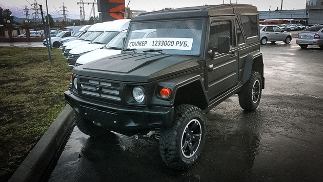 Внедорожник Апал-21541 "Сталкер" 2019 года выпуска заметили у одного из тольяттинский дилеров с ценником на лобовом стекле.