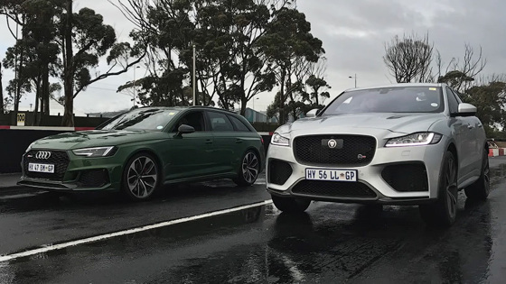 Южноафриканский журнал Car свел в дуэли самую мощную версию британского кроссовера Jaguar F-Pace и «младший» топ-универсал Audi RS4 Avant. Заезд с места проходил под моросящим дождем, так что соперникам пригодились системы полного привода. По заводским характеристикам оппоненты близки: у обоих восьмиступенчатые автоматические трансмиссии и четыре ведущих колеса. Под капотом Audi RS4 располагается 2,9-литровый мотор V6 мощностью в 450 лошадиных сил, позволяющий универсалу массой 1800 килограммов набирать первую «сотню» за 4,1 секунды. Jaguar F-Pace SVR приводит в движение 550-сильная компрессорная «восьмерка». Кроссовер почти на 200 килограммов тяжелее и на 0,2 секунды медленнее Audi разгоняется с 0 до 100 километров в час. Чтобы уравнять шансы, в универсал посадили двух пассажиров. Четверть мили соперники прошли ноздря в ноздрю, причем по ходу короткого заезда преимущество перешло от одной машины к другой. По традиции, у гонок на мокром асфальте неожиданный победитель: подобный расклад сложился и в мартовском дрэге 30 машин на треке TopGear, и на недавнем Гран-при Формулы-1 в Хоккенхаймринге. Источник:YouTube-канал CAR magazine SA