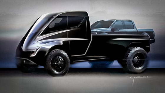 По его словам, наиболее вероятен показ машины в ноябре и очень не хотелось бы, чтобы Илон ошибался. Планировалось сорвать покрывало с пикапа минувшим летом, а затем сроки сдвинули на октябрь. Технические подробности держатся в секрете. Известно лишь, что в конструкции применят титан, а стилистика напомнит автомобили из легендарного фильма Ридли Скотта "Бегущий по лезвию" 1982 года. Впрочем, рендерное изображение, дающее примерное представление о стилистике, уже давно представлено.