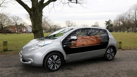 Электрический хэтчбек Nissan Leaf превратили в экологичный катафалк. Сейчас он уже доступен в 16 похоронных бюро Великобритании. Несмотря на отсутствие вредных выбросов, катафалк из Nissan Leaf вышел не самый удачный — из-за довольно компактных размеров, для водителя почти не осталось места, поэтому он сидит практически рядом с гробом, а не перед ним. Также хэтчбек оснастили двумя большими оконными панелями по бокам, что позволяет без труда просматривать весь салон. Электрохэтч создал директор одного из похоронных бюро Королевства. Автомобиль пополнил линейку из других экологичных решений, который уже были внедрены ранее — например, его компания предлагает биоразлагаемые урны. Как сообщает издание Metro, решение создать электрический катафалк стало ответом на запросы клиентов. По его словам, в последнее время все больше людей беспокоились о том, какой вред наносят окружающей среде, даже несмотря на свое личное горе. В середине августа еще один электрокар превратили в ритуальный автомобиль — по заказу сотрудника похоронной индустрии из Норвегии построили катафалк на базе Tesla Model S 2018 года выпуска. Автомобиль распилили пополам, чтобы удлинить на 80 сантиметров. При этом, как утверждает владелец, бывший седан от «Теслы» все еще на пятилетней заводской гарантии.