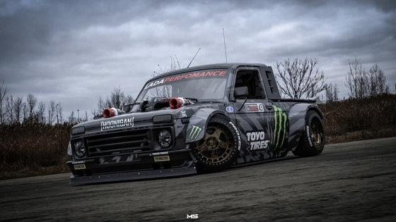 Дизайнер из Таганрога Михаил Сачко представил необычный проект «Нивы» в стиле дрифт-каров Кена Блока. Так, машина превратилась в пикап, у нее значительно расширены колесные арки, в которые установлены колеса с кованными дисками. «Нива» получила заниженную подвеску, дополнительные аэродинамические элементы спереди и сзади. Автомобиль окрашен в серую камуфляжную цветовую схему. Стандартный двигатель «Нивы» заменен на более мощный с турбонагнетателями, которые торчат из специальных отверстий в капоте. Пока этот автомобиль существует только в виде 3D-изображений, но воплатить подобный проект в жизнь вполне возможно. Кен Блок — американский автогонщик, известный своими зрелищными дрифт-заездами по сложным трассам.