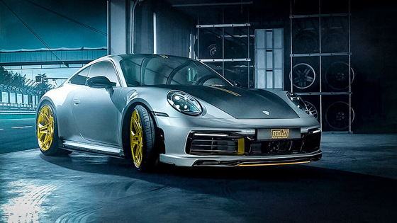 Компания TechArt, один из ведущих тюнеров автомобилей Porsche, представил программу комплексных апгрейдов для полноприводного купе. Carrera 4S – это бомба, иначе не скажешь. Автомобиль нынешней генерации 992 вооружен 3,0-литровой оппозитной "битурбошестеркой", развивающей 450 л.с. и агрегатированной с восьмиступенчатым преселективным "роботом" с двумя сцеплениями. Разгон до 100 км/ч укладывается в 3,6 с. Но творение TechArt, очевидно, быстрее – двигатель развивает на 59 л.с. и 80 Нм больше, чем агрегат стандартного 911, то есть в его активе суперкаровские 510 л.с. и 610 Нм. Что интересно, при выбранной настройке Normal мотор выдает заводские показатели, но активация ездовых режимов Sport и Sport Plus позволяет получить полную заявленную отдачу. В числе апгрейдов числится спортивная выпускная система и подвеска, уменьшающая дорожный просвет на 30 мм. Львиная доля очарования автомобиля заключается в стилистических новшествах и аэродинамических компонентах. Ярким элементом дизайна выступают колесные диски Daytona II диаметром 20 спереди и 21 дюйм сзади. Сложный дизайн спиц, возможность заказать двухцветную окраску… Кроме того, автомобиль облачен в обвес и щеголяет антикрылом, придающим ему совсем уж трековый вид.