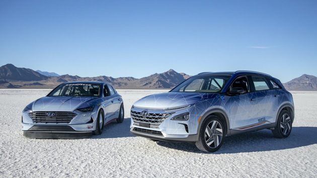 Две команды инженеров Hyundai установили рекорды скорости на соляных озерах Бонневиля, которые теперь проходят процедуру омологации в FIA. Машины выступили в классах автомобилей на водородных топливных элементах и бензин-электрических гибридов. Публичный показ подготовленных для этих заездов кроссовера Nexo и седана Sonata Hybrid состоится на шоу SEMA в Лас-Вегасе. Экологичные концепты для Бонневиля построены силами американского и южнокорейского подразделений Hyundai, а также протестированы инженерами американского технического центра марки. Кроссовер Nexo поборется за звание самого быстрого водородного автомобиля — он разогнаться до 170,85 километра в час, и все данные уже переданы для регистрации в FIA. Вседорожник оборудован аэродинамической юбкой под бампером, каркасом безопасности, гоночным ковшом Sparco, шеститочечными ремнями, системой пожаротушения и сетками на окнах. Экспериментальный Hyundai Sonata разогнался до 265,01 километра в час. Для этого его оснастили спортивными амортизаторами и пружинами KW, специальными покрышками Goodyear Eagle, колесами Vision Rally 55 с аэродинамическими колпаками. Кроме того, на седан установили доработанный выпускной коллектор и тракт Injen Technology, перекалиброванный ЭБУ, систему впрыска закиси азота, а в топливный бак залили гоночное топливо VP Racing MS 109. В 2018 году рекорд скорости Бонневиля установил 608-сильный Volkswagen Jetta. Седан смог разогнаться до 338,2 километра в час, улучшив предыдущее достижение на 2,7 километра в час. Рекордную «Джетту» построили на базе серийной модели по требованиям класса BGC/G Южно-калифорнийской хронометрической ассоциации и оснастили доработанным двухлитровым турбомотором от спортивной Jetta GLI, совмещенным с шестиступенчатой «механикой».