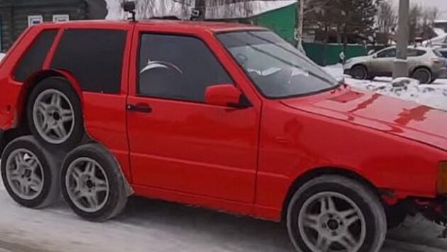 Блогеры из России превратили малолитражку в 8-колёсного монстра