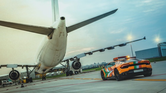 Аэропорт имени Гульельмо Маркони в Болонье получил новую лидировочную машину. Отныне сопровождать самолеты на место стоянки или к гейтам будет Lamborghini Huracán, украшенный ливреей, разработанной сотрудниками центра стиля итальянской марки. Последний раз «Уракан» выезжал на ВВП летом этого года. Lamborghini Huracan поступил на службу в аэропорт Lamborghini и администрация аэропорта имени Гульельмо Маркони сотрудничают с 2013 года, когда лидировочной машиной стал Lamborghini Aventador LP 700-4. Компания даже организовывала экспозиции в главном здании: там выставляли живые машины, продавали фирменные аксессуары и билеты в музей и на фабрику в коммуне Сант-Агата-Болоньезе, Италия. Нынешний суперкар — уже шестой по счету. Теперь в качестве автомобиля сопровождения выбран Lamborghini Huracán LP 580-2 с задним приводом и 5,2-литровым атмосферным двигателем V10. Мощность агрегата — 580 лошадиных сил и 540 Нм крутящего момента. На взлетно-посадочной полосе «Уракану» вряд ли пригодится его динамика, но в случае чего купе разгонится до ста за 3,4 секунды. Максимальная скорость -- 320 километров в час. Но все же чаще аэропорты обслуживают не суперкары, а обычные автомобили. Например, в зависимости от страны это может быть Mercedes-Benz Vito, Volkswagen Amarok или Dacia Duster. А вот на авиашоу можно встретить те же «Ламбы». 10 пожарных машин для аэропортов