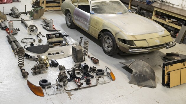 Онлайн-аукцион Collecting Cars собирается выставить на продажу полностью готовый к постройке автомобиль 40-летний Ferrari GTB/4 Daytona. Двухдверка разобрана, но будущий владелец получит в комплекте все недостающие детали, чтобы восстановить модель. Коллекцию старых Ferrari оценили в полмиллиарда рублей Автомобиль в свое время получил серьезные повреждения, но на данный момент кузов спорткара восстановлен. В начале процесса реставрации были куплены все необходимые элементы, которые нужно заменить, но первому владельцу так и не удалось завершить ремонт. Потом GTB десятилетия хранилась у разных владельцев, которые тоже не закончили восстановление легендарной модели. История этого автомобиля началась в 1971 году, когда первый владелец забрал новый Ferrari GTB с завода в Маранелло. Он участвовал в Гран-при Монако и других соревнованиях, но после нескольких посещений сервиса, продал машину. Она еще дважды переходила из рук в руки, пока в конце 70-х не попала в аварию. Владелец попытался вытащить спорткар из кювета с помощью обернутых вокруг кузова цепей, что только усугубило полученные повреждения. В итоге автомобиль оказался в настолько плачевном состоянии, что бывший владелец решил избавиться от него. Модель прошлась еще по двоим покупателям, которые вскоре понимали, что переоценили свои силы, и продавали ее дальше. В итоге она почти 30 лет провела без движения, пока не попала в руки нынешнего владельца. Он купил ее в 2006 году и потратил 13 лет на то, чтобы кропотливо восстановить кузов и составить список всех, даже самых мелких деталей, которые необходимы для восстановления. В итоге автомобиль, спустя долгие годы простоя, наконец-то получил должное внимание и внешне восстановлен почти полностью. Кузов реставрировали в одной из лучших мастерских, шасси довели до заводского вида. Кроме того, за время ремонта у владельца скопилось несколько десятков коробок с всевозможными запчастями для автомобиля. Для завершения работ осталось не так много — автомобиль нуждается в покраске, восстановлении механических агрегатов (для которых уже есть запчасти) и в восстановлении салона. Бонусом новый владелец получит «родной» одометр, на котором все еще зафиксирован реальный пробег — 26 117 миль (42 тысячи километров). Источник: Collecting Cars Самая неправильная Ferrari
