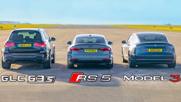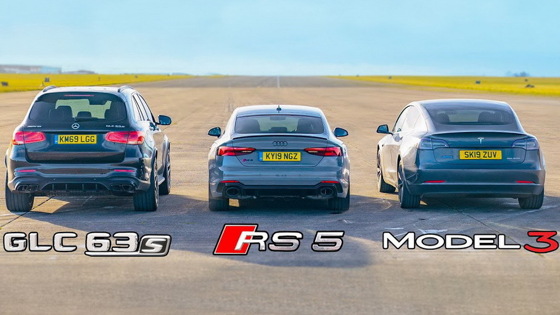 Видео: Audi RS5 и Mercedes-AMG GLC 63 S сразились в дрэге с Tesla Model 3
