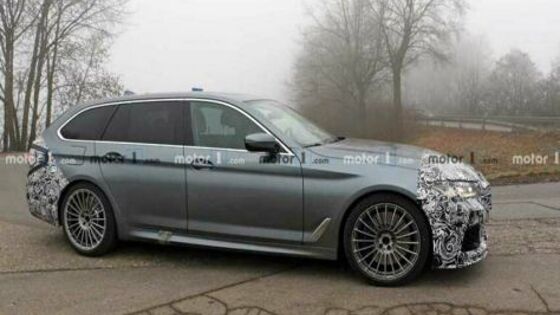 Фотошпионам удалось сделать несколько снимков универсала Alpina B5 Touring. Машина с символикой BMW пока не до конца избавилась от камуфляжа, поэтому могут быть еще доработки. От BMW 520 Touring представителя Alpina выделяет несколько внешних отличий. В первую очередь передняя и задняя оптика имеет другой дизайн. Кроме того, сзади имеется сдвоенный патрубок выхлопной системы, что является отличительной особенностью автомобилей от Alpina. Сюда также можно добавить типичные многоспицевые колесные диски. Несмотря на присутствие маскировки, можно сделать вывод о том, что спереди появился более мощный передний бампер с двумя воздухозаборниками. С задним же бампером окончательной ясности пока нет. Вполне возможно, что он останется таким же, как и на текущем варианте B5 Touring. Не ожидаются изменения и в двигателе. Останется турбомотор V8 на 4,4 литра. Окончательные данные по обновленной Alpina B5 Touring станут известны позднее.