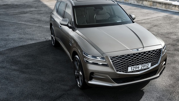 Genesis GV80 стал первым автомобилем, в основу которого с самого начала лёг новый дизайнерский язык марки — «Атлетическая элегантность». Его отличительные черты — это пятиугольный щит радиаторной решетки с ромбическими ячейками и рассечённые пополам по горизонтали фары (эта линия продолжается хромированными накладками на бортах и разделёнными задними фонарями). Эти же элементы дизайнеры Genesis в ходе рестайлинга довольно удачно внедрили в представительский седан G90. Пятиугольный мотив повторяется подштамповкой на капоте. Для ромбиков радиаторной решетки корейцы придумали обозначение «G-Matrix»: этот же орнамент используется в обивке кресел, рисунке дисков... Ромбики использованы даже в оформлении диодных фар — видите характерные насечки в уголках? Четыре светодиодные «пушки» в фарах головного света — тоже часть нового дизайнерского языка. Лучше рассмотреть особенности стиля поможет рисунок, который выполнил шеф-дизайнер по экстерьеру Чон Мён-Чжин. Кстати, дизайн кроссовера — по-настоящему международный: это продукт кооперации студий в Южной Корее, США и Германии. Кроссовер построен на совершенно новой платформе. В основе своей она заднеприводная — двигатель установлен продольно и расположен над передней осью. Привод на передние колёса осуществляется при помощи узла отбора мощности за коробкой передач и редуктора справа под мотором. Предусмотрены как полноприводные модификации, так и варианты с приводом только на заднюю ось. Причём полноприводники получат самоблокирующийся дифференциал с электронным управлением в приводе задних колёс. Среди особенностей шасси — двухрычажная подвеска спереди и многорычажная сзади. Кстати, эта же платформа должна лечь в основу будущего седана G80 второго поколения. Кузов Genesis GV80 стальной, с широким использованием сверхвысокопрочных сталей горячей штамповки. А вот капот и двери (боковые и задняя) ради снижения массы выполнены из алюминия. Длина машины составляет 4945 миллиметров — то есть GV80 относится к одному размерному классу с BMW X5 и Volkswagen Touareg. Двигатель пока один — это совершенно новый турбодизель 3.0 мощностью 278 лошадиных сил. Шестицилиндровый мотор имеет рядную компоновку, то есть разработан специально для продольной установки на машинах Genesis. Среди его особенностей — алюминиевый блок цилиндров (что редкость для дизелей), турбина переменной геометрии на шарикоподшипниках и жидкостный интеркулер. Коробка передач — восьмиступенчатый гидромеханический «автомат». Расход топлива для полноприводной версии — 9,2-9,6 литров на 100 километров в смешанном цикле. Вскоре Genesis GV80 получит и пару бензиновых моторов: турбированную «четвёрку» 2.5 мощностью 290 сил от Kia K5 GT и V6 3.5 c двумя турбинами и комбинированным впрыском мощностью 380 лошадиных сих (это эволюция мотора V6 3.3 Turbo, известного нам по Genesis G90 и Kia Stinger). Кроссоверы Genesis GV80 будут комплектоваться только пружинной подвеской — пневмостойки не предусмотрены даже за доплату, как и у флагманского седана G90. Но по заказу можно будет получить адаптивную подвеску: амортизаторы меняют жесткость на основании данных с фронтальной камеры, которая сканирует дорожное полотно перед машиной. Аналогичные подвески применяются на Audi A8 и DS7. Похожая идея лежит и в основе мерседесовской подвески E-Active Body Control, но та система совершеннее — за счёт быстродействующей 