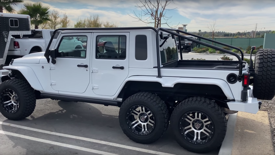 На машину снял обзор американский блогер Дуглас ДеМуро. Шестиколесный пикап на базе Jeep Wrangler выглядит так, словно готов к поездкам по серьезному бездорожью, однако в действительности его проходимость впечатляет не так сильно: дело в том, что тюнеры не подсоединяли третий мост и ведущими являются лишь четыре колеса. Машина оснащена стандартным бензиновым V6 объемом 3,6 литра, способным выдавать 289 лошадиных сил и 353 Нм крутящего момента, и пятиступенчатой автоматической коробкой переключения передач. Шестиколесный пикап продает компания CNC Motors. Цена составляет 149 999 долларов.